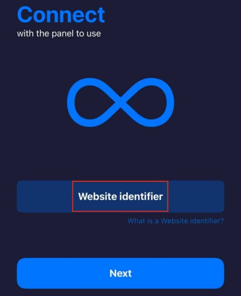 2. 起動した画面の【Website Identifier】のところに、【1coinvpn】(※半角、英語は全て小文字で)と入力していただき、【Next】ボタンをタップしてください。