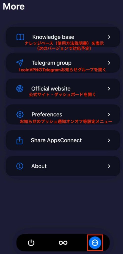 1. 画面下の右、【More】メニューの機能は以下の通りです。